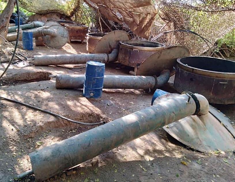 Así como dos trituradoras, un horno industrial, 20 quemadores, cuatro carretillas, 17 reactores con destilador con capacidad de 200 litros, tres reactores con dos condensadores cada uno y un motor, 40 tanques de gas, 237 tambos con capacidad de 60 litros y 200 litros, siete contenedores metálicos con capacidad de dos mil y mil litros, 12 tinas con capacidad de 600 litros, y 260 bidones con capacidad de 40 litros.