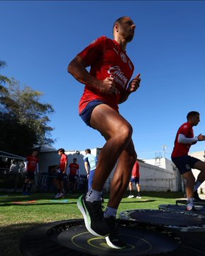Hasta antes del jueves el Chicharito entrenaba por las tardes en horario distinto al primer equipo y lo hacía junto con Carlos Cisneros, quien también se rehabilita de una lesión similar.