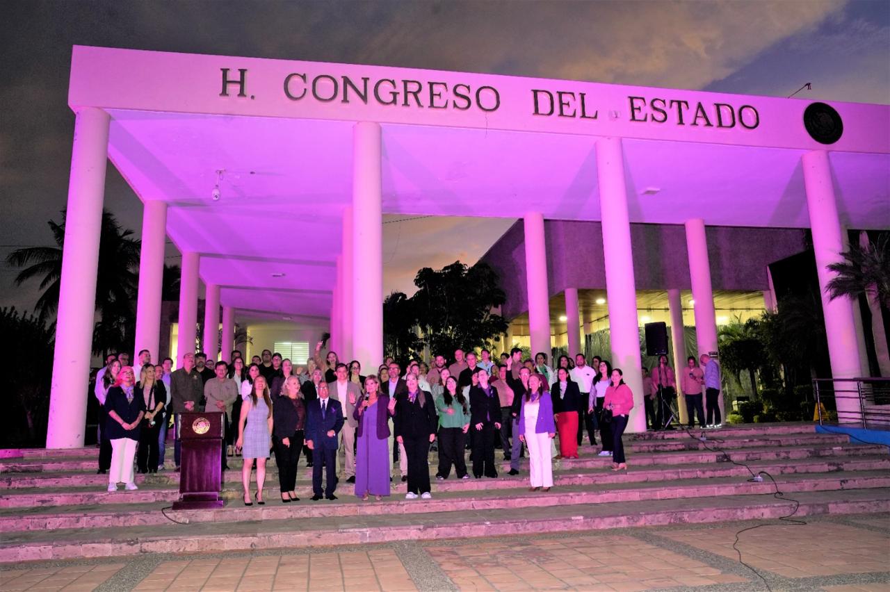 Congreso del Estado ilumina de morado su edificio en conmemoración del Día Internacional de las Mujeres.