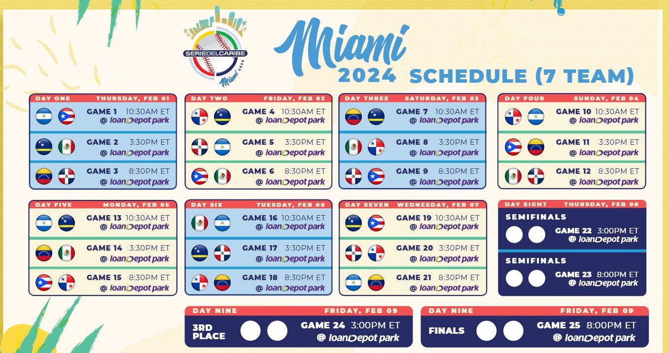 La Serie del Caribe Miami de 2024 está definida. Los siete equipos están listos para el gran torneo caribeño que comienza el próximo jueves 1° de febrero.