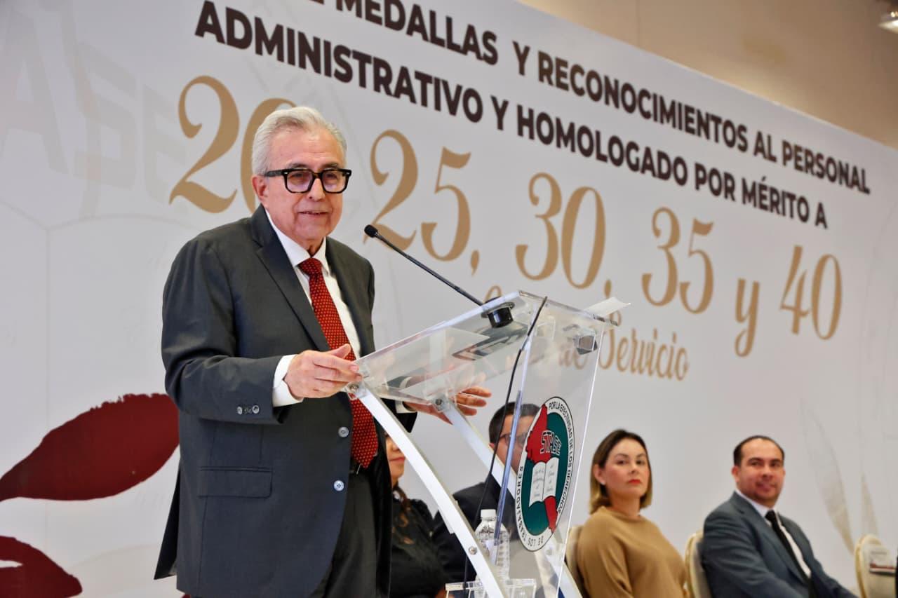 “Hoy al entregar estas medallas celebramos mucho más que un número de años, celebramos vocaciones que han sostenido el aparato gubernamental con su esfuerzo diario, cada año de servicio de ustedes representa decisiones éticas, jornadas intensas, responsabilidad frente a la ciudadanía y una convicción que distingue al servidor público sinaloense”, dijo.