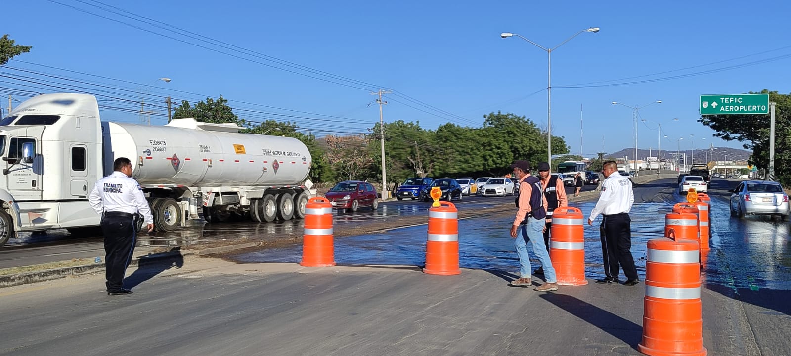 El jefe de la unidad vial comentó que la habilitación de vuelta en «U» con precaución, estará delimitada con conos y personal vial frente al Fraccionamiento Esmeralda y la calle Isla de la Piedra en la colonia Luis Echeverría, la finalidad de dicha estrategia es evitar aglomeracion vial en la zona de reducción de carriles y quienes se dirijan hacia el sur lo hagan en dicho punto.