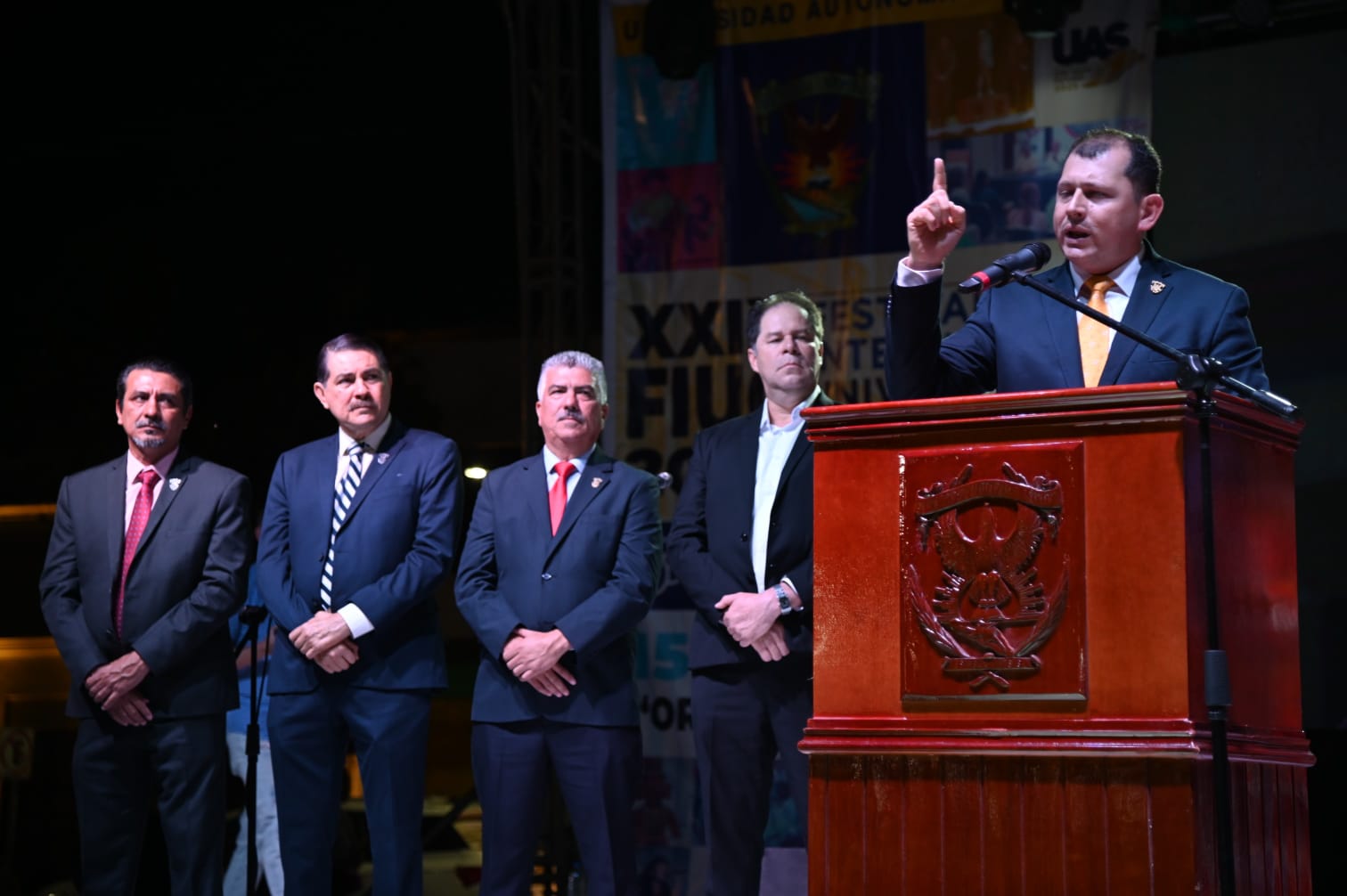 El Encargado del Despacho de Rectoría, doctor Robespierre Lizárraga Otero, acompañado de su familia y de autoridades universitarias entre ellas el Rector Titular, doctor Jesús Madueña Molina, ponderó que el Festival es la mejor manera de celebrar a la institución.