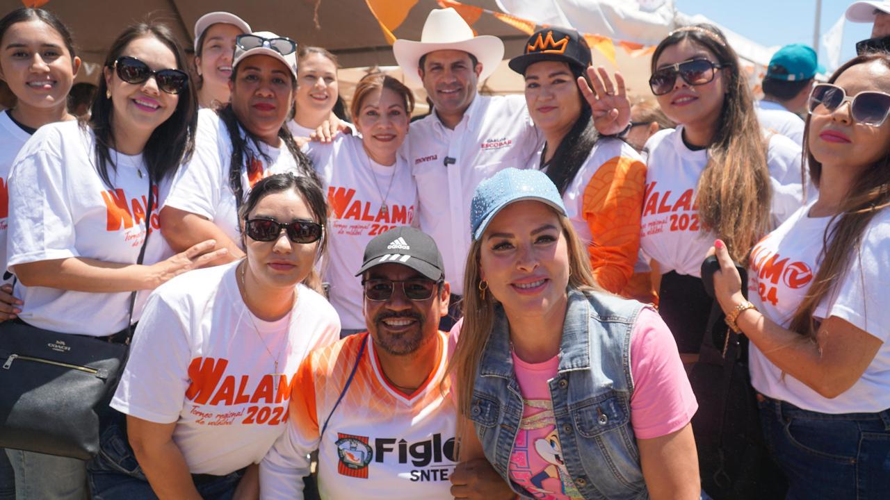 Los integrantes del magisterio del SNTE sección 53, mostraron su apoyo a los candidatos de la fórmula de Morena, durante la edición 20 del Torneo Regional de Voleibol El Walamo 2024.