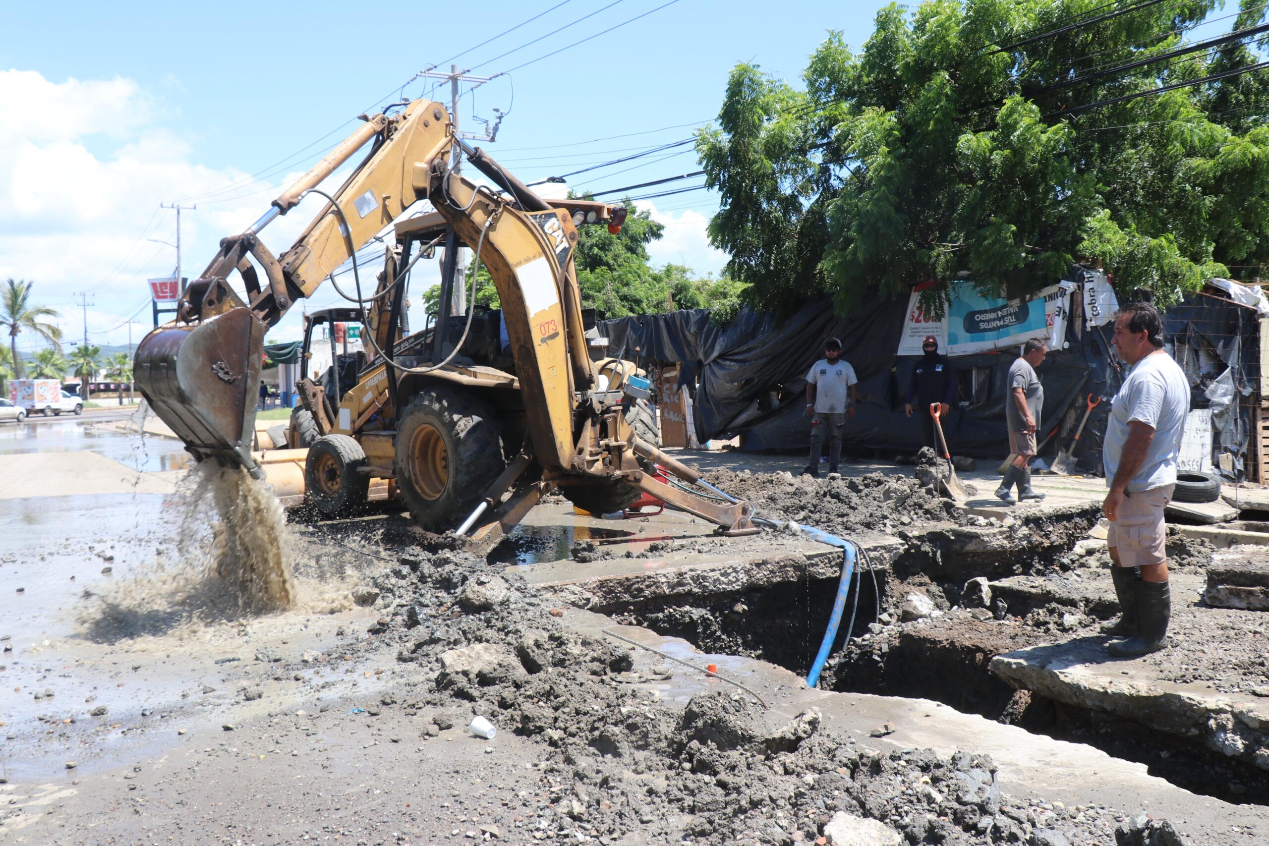 Para resarcir el daño y restablecer el servicio lo antes posible a los usuarios del Infonavit Alarcón y los fraccionamientos Arboledas, La Joya, Prados del Sol y Puesta del Sol, se dispuso de una máquina retroexcavadora y un camión hidroneumático para desaguar con mayor rapidez la zanja y dar seguimiento a los trabajos para reponer 6 metros de la tubería de 8 pulgadas de diámetro.