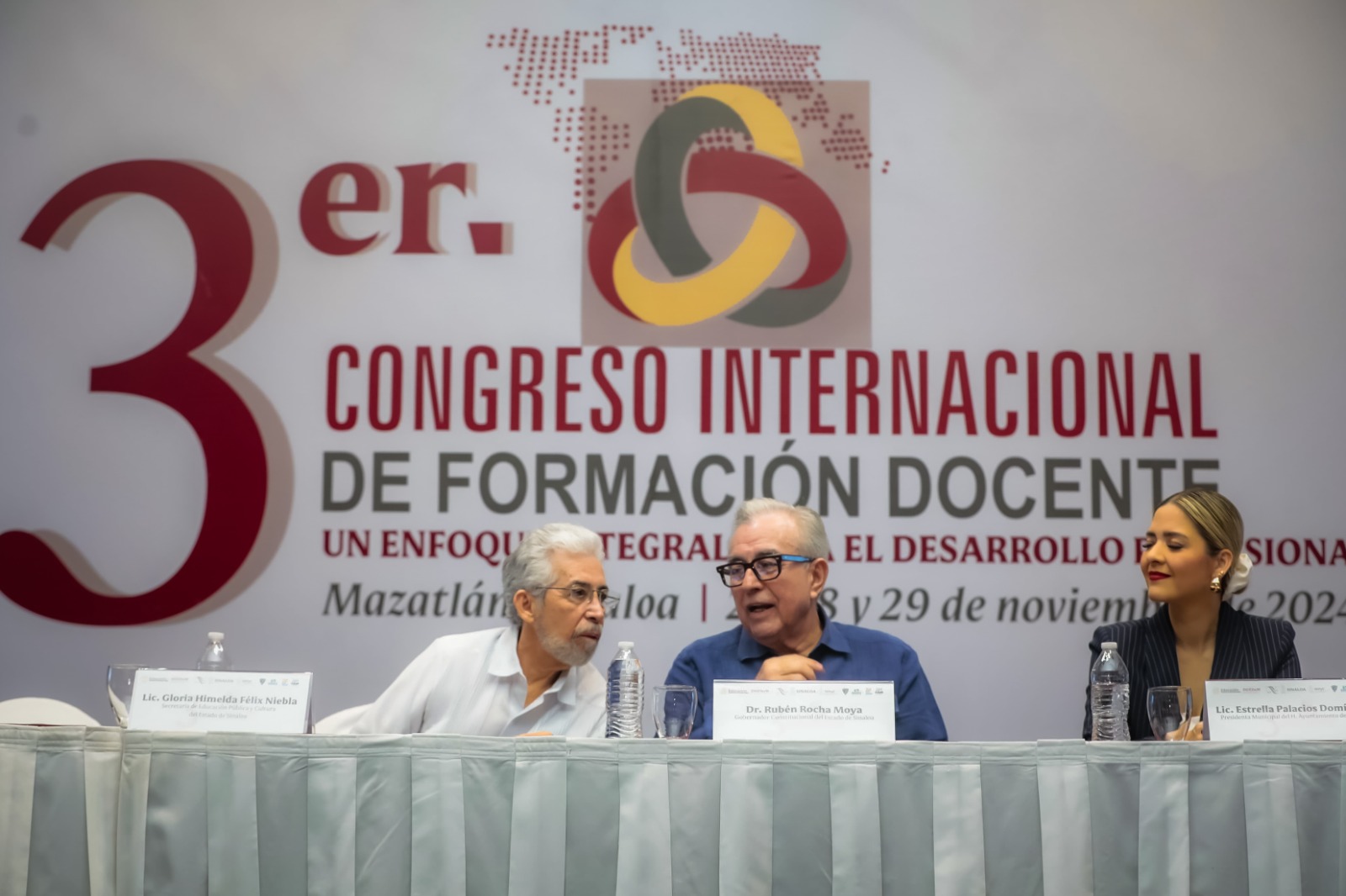 Ante estudiantes normalistas de varios estados de la República, y conferencistas de España, Perú y de distintas entidades del país, el gobernador Rubén Rocha Moya inauguró el Tercer Congreso Internacional de Formación Docente, con el lema: “Un enfoque integral para el desarrollo profesional y la formación inicial”, que congregará estos tres días en Mazatlán, hasta el próximo viernes, a cientos de futuros maestros.