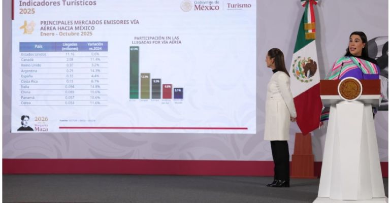 El puerto registró más vuelos, ocupación hotelera, cruceristas y mayor derrama económica durante 2025, de acuerdo con cifras oficiales informa en La Mañanera la secretaria Josefina Rodríguez Zamora, ante la presidenta Claudia Sheinbaum Pardo.