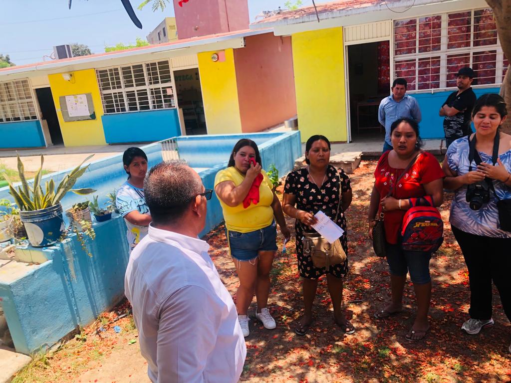 - El empresario acudió al Preescolar Anabella de Gavica en donde padres de familias se manifestaron por las condiciones en que sus hijos tomaban clases