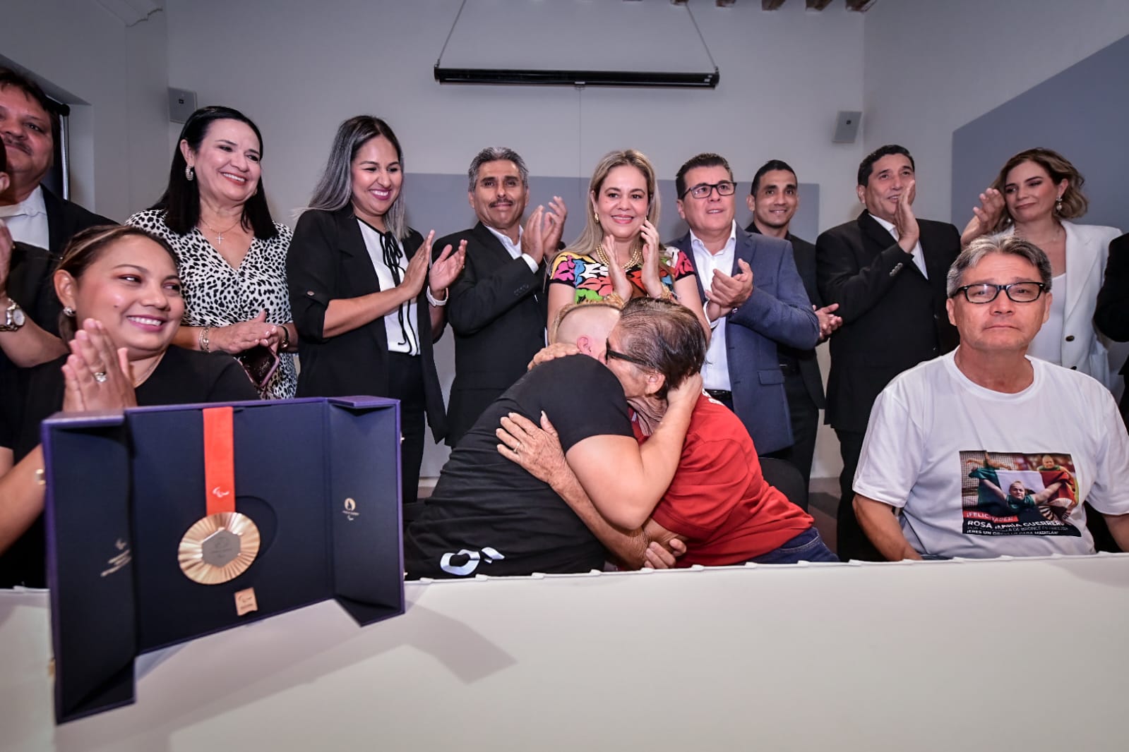 Regidores y el Presidente Municipal de Mazatlán, Édgar González, realizaron un reconocimiento a la medallista de bronce de los Juegos Paralímpicos de París 2024, Rosa María Guerrero Cázares, en la Galería del Teatro Ángela Peralta.