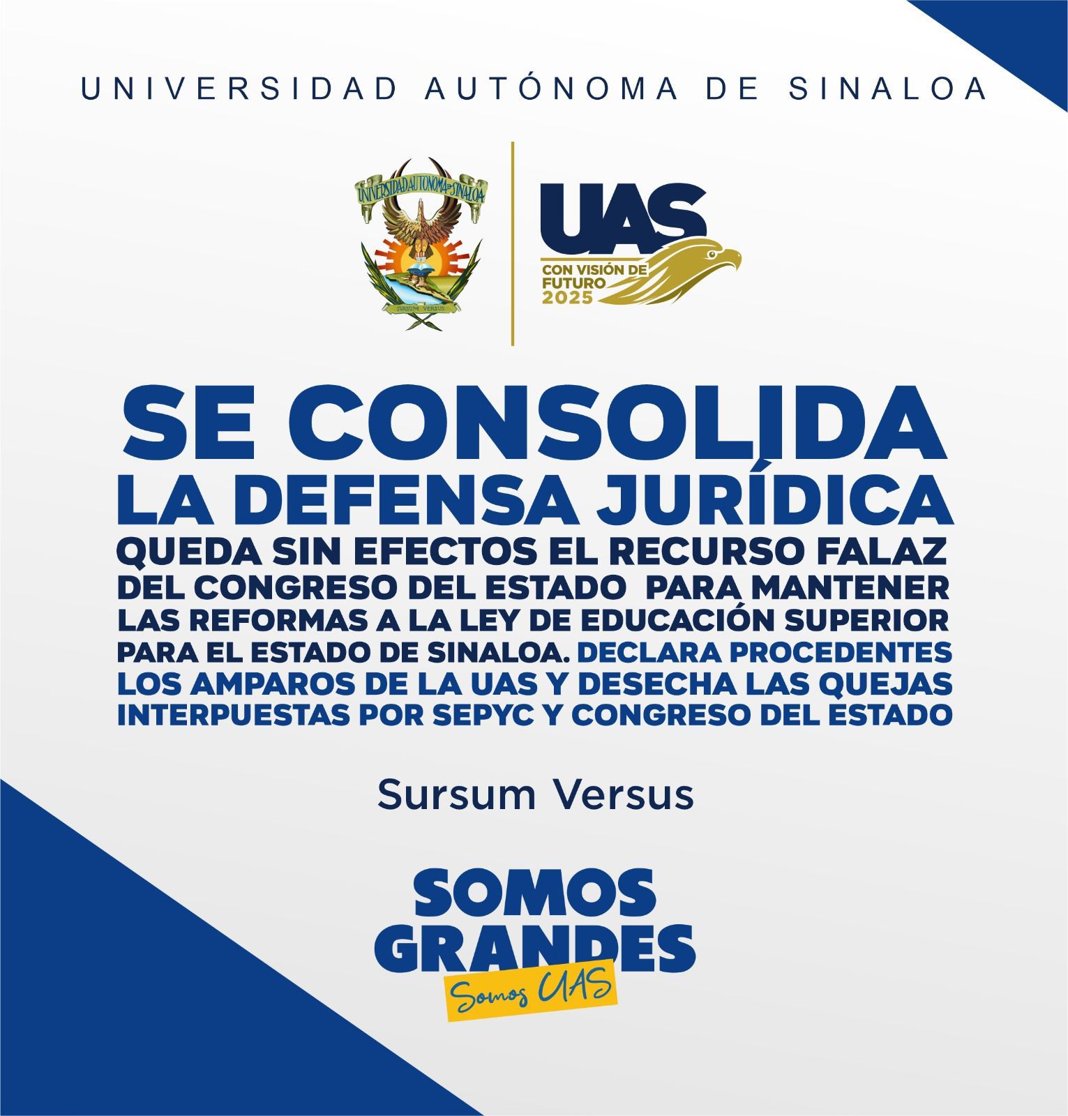 - Tribunal Colegiado señala que la UAS sí está legitimada para promover amparo contra la Ley de Educación Superior; desecha recursos de SEPyC y el Congreso